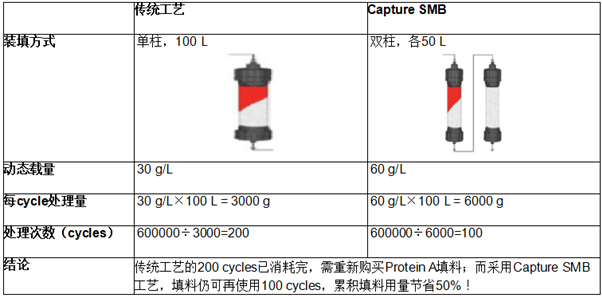 處理量:600 kg mAb,填料體積:均為100 L。