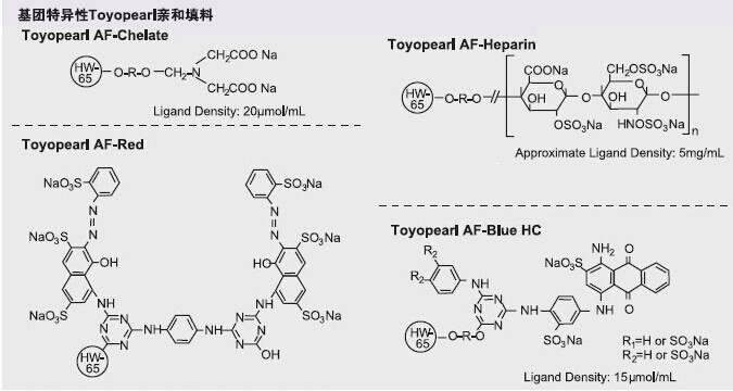 Toyopearl AF-Red-650M填料結(jié)合了普施安紅HE-3B(又稱活性紅120)。這種填料用于純化核苷酸依賴酶,脂蛋白,纖維蛋白溶酶原,多肽,激素和細胞毒素。