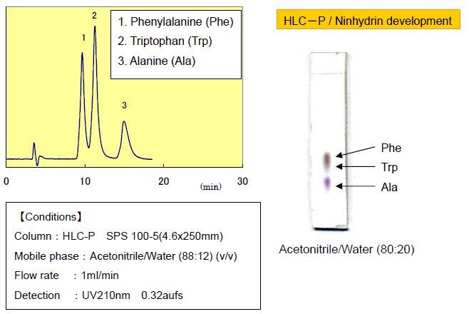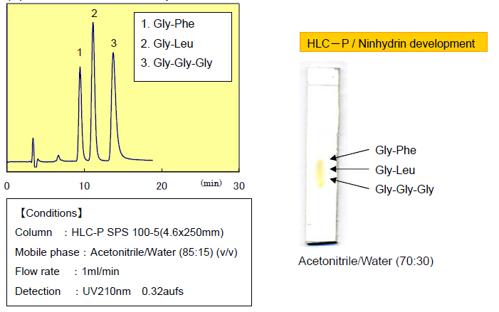 ????因此,對于極性化合物的洗脫,HILIC模式和反相模式是互補的。富士硅化學有限公司開發了兩款HILIC模式的填料,命名為“HLC”硅膠。兩種HLC硅膠都含有兩性的官能團,共價鍵合在硅膠表面。“HLC-A”用于分離純化有機酸、核酸和糖類;“HLC-P”用于分離氨基酸、多肽。