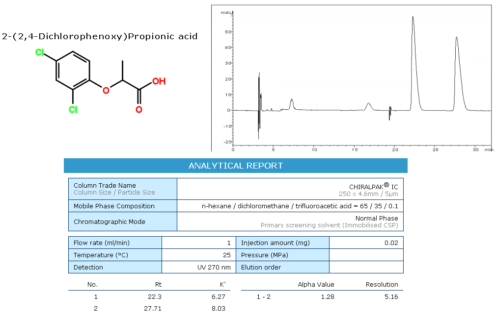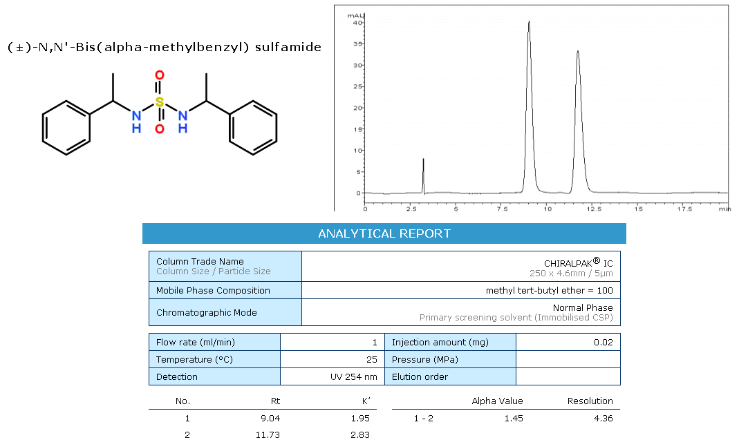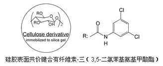 IC耐溶劑型手性柱,硅膠表面共價鍵合有纖維素-三(3,5-二氯苯基氨基甲酸酯)。溶劑使用無限制,廣泛的溶解條件,可使用任何互溶的溶劑作為流動相、溶解樣品、手性柱再生。