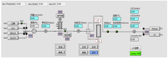 層析系統軟件符合新版GMP規范,采用圖形化界面、全自動操作,簡明扼要,任何操作及狀態均可實時顯示在主界面狀態欄中,自動化程度高。結合了大量的容錯性設計,貼合生產實際,降低了對研發人員的技能要求。