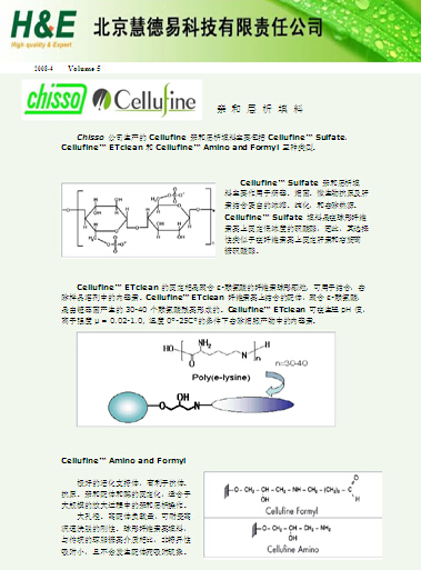 This introduction: Chisso 公司生產的 Cellufine 親和層析填料主要包括 Cellufine? Sulfate,Cellufine? ETclean 和 Cellufine? Amino and Formyl 三種類型。